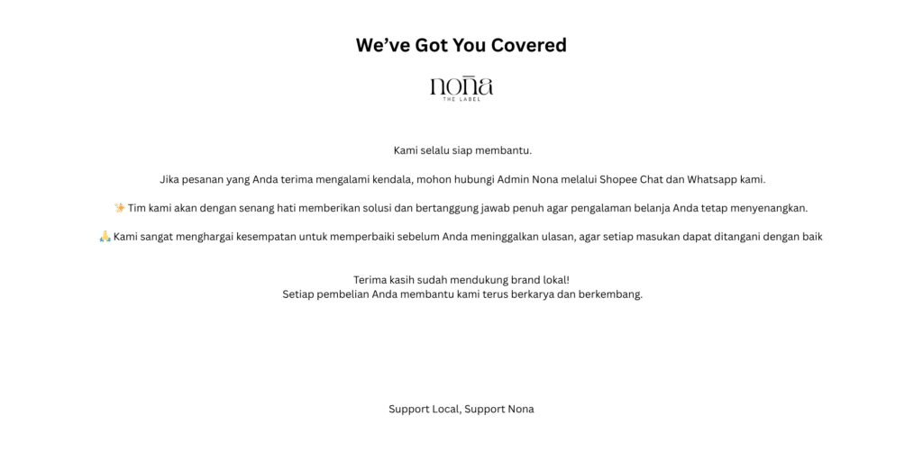 Born in Bandung, Indonesia — NONA (stylized as NO-UA) is a label that celebrates the beauty of feeling good and looking effortless. NO-UA is made for women who want to look polished without trying too hard. Each piece is designed to feel comfortable, timeless, and effortlessly elegant because style should never feel like a chore.